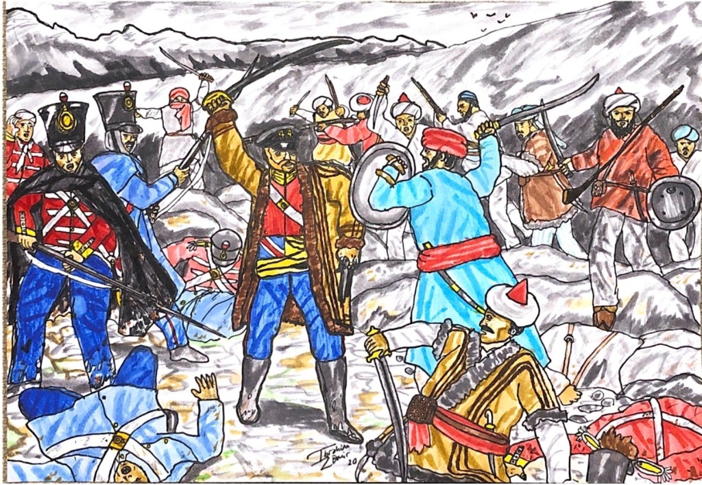 The First Anglo-Afghan War (1839-42) saw forces of the British Army and East India Company support former ruler Shah Shuja Durrani, in the hopes of curbing Russian expansion towards India. Whilst they had successfully completed their objectives and reached Kabul by 1840, constant rebellions forced them and their camp followers to retreat from Kabul to the safety of a British garrison at Jalalabad.